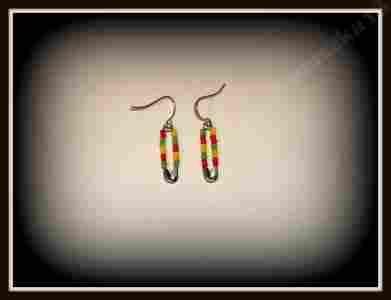 kolczyki z koralików agrafki, agrafka,rasta,reggae