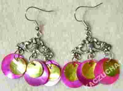 Przedmiotem aukcji są energetyczne:) kolczyki z antyalergicznym elementem ozdobnym oraz masy perłowej o barwie różowej w połączeniu z zółtym, jak na zdjęciu. Bigle posrebrzane, baranki silikonowe w komplecie z kolczykami. Długość całkowita ok.5cm, szer.ok.2,4cm. Kolczyki są bardzo lekkie.