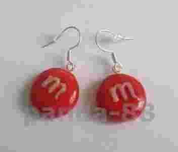Kolczyki z modeliny czerwone cukierki m&m