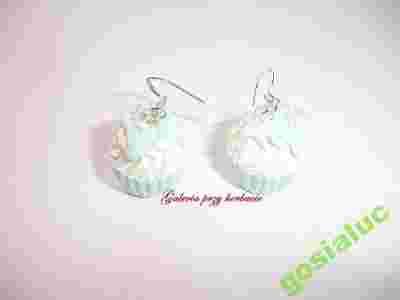 Kolczyki z modeliny fimo babeczki miętowe srebro