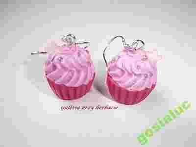 Kolczyki z modeliny fimo babeczki różowe 2 srebro
