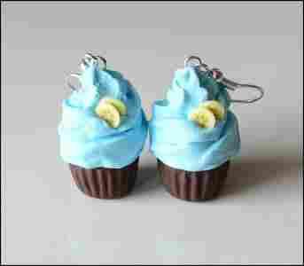 kolczyki z modeliny fimo, cupcake, błękit,pastele
