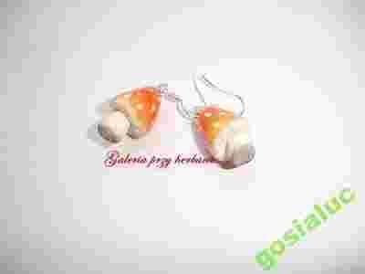 Kolczyki z modeliny fimo grzybki muchomorki srebro