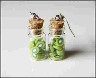 kolczyki z modeliny fimo, słoiczki, kiwi, owoce
