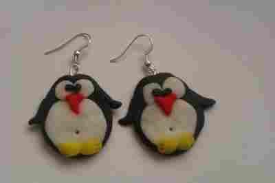KOLCZYKI Z MODELINY PINGWINY - RĘCZNIE ROBIONE :)