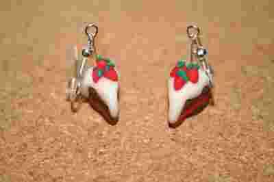 Kolczyki z modeliny, torty z truskawkami i lukrem