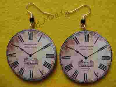 Kolczyki ZEGAR decoupage hand made Walentynki