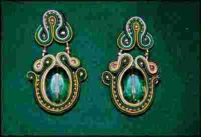 KOLCZYKI ZIELEŃ SOUTACHE SUTASZ HAND MADE ZARA