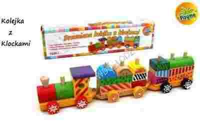 KOLEJKA drewniana Z KLOCKAMI pociąg, klocki WDD
