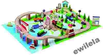 Drewniana kolejka jest idealna do zabawy dla kilku dzieci. Posiada długie tory z licznymi zakrętami, różnorodne części i elementy. Zestaw zawiera pojemnik na wszystkie elementy, który sprawi że Twoje dziecko po super zabawie będzie mogło zadbać o porządek. Dziecko poprzez zabawę rozwija wyobraźnię tworząc wiele różnorodnych konstrukcji. Dodatkowo wykonanie z drewna w odróżnieniu od plastikowych zabawek, gwarantuje długi czas użytkowania zabawki.
