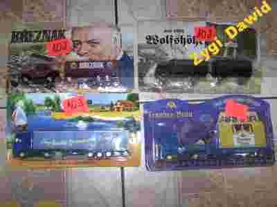 Dziś w aukcji Kolekcja Nowych zapakowanych 4 szt samochodzików o długości około 20 cm szer 3 cm wszystkie koła obrotowe zaczep ruchomy Aukcja dotyczy wszystkich 4 szt Będziemy wystawiać także po 1 szt na innych naszych aukcjach Jeśli twoim zdaniem w opisie zabrakło istotnych informacji na temat przedmiotu Zadaj pytanie sprzedającemu wyjaśnię wszystko co będę w stanie tak abyś nie napisał ze otrzymany przedmiot nie był zgodny z opisem.. Nie wycofuję się z aukcji zalicytujesz aukcja jest twoja Zobacz inne moje aukcje może znajdziesz coś ciekawego Do wysyłki aukcja będzie starannie zapakowana Koszt wysyłki 15 zł Wszelkie prawa zastrzeżone,zakaz kopiowania całości lub części opisu oraz zdjęć,w aukcji W przypadku niezastosowania się do zakazu zostaną wyciągnięte konsekwencje prawne. USTAWA O PRAWACH AUTORSKICH: Zgodnie z ustawą z 4 lutego 1994 o prawie autorskim i prawach pokrewnych (D.U. 1994/24/83) za naruszenie praw własności poprzez kopiowanie, powielanie i rozpowszechnianie przedstawionych wyżej treści bez zgody właściciela grozi grzywną oraz karą pozbawienia wolności od 6 m-cy do lat 5 (art. 115.1).