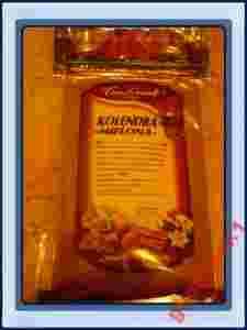 Kolendra zapakowana jest w oryginalną torebkę z zapięciem strunowym. Gwarantuje to świeżość i smak przez długi czas.
