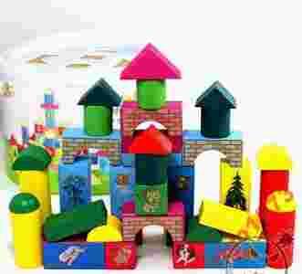 Kolorowe drewniane Klocki w wiaderku - sorter- 100