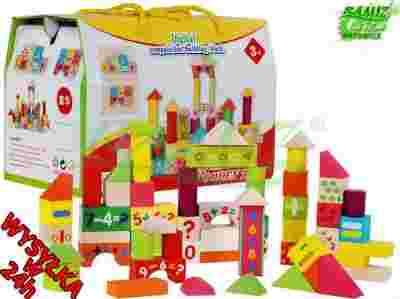 zestaw 58 kolorowych KLOCKÓW DREWNIANYCH (383).