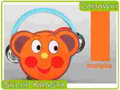 KOLOROWE TAMBURYNO Z DREWNA GRZECHOTKA MAŁPKA