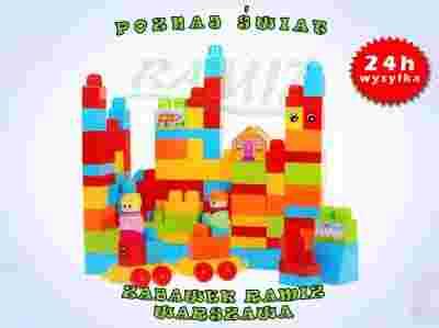 - 80 kolorowych klocków różnej wielkości do układania,