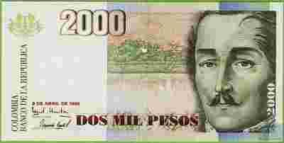 KOLUMBIA 2000 Pesos 9-4-1999 P445e UNC Santander