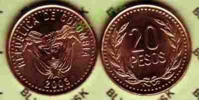 KOLUMBIA /KM-282.2/ 20 PESOS 2003 Stan Monety I/-I