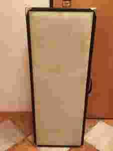 Przedmiotem sprzedaży jest świetna obudowa kolumny o wymiarach zewnętrznych 100x39,5x22. Pochodzi z zamkniętego studia analogowego gdzie miała być głównym źródłem do reampingu i alternatywnym piecem szerokopasmowym do gitary/basu/etc. Jest wykona z porządnej grubej płyty (19kg), oklejonej czarną imitacją skóry, okucia narożników metalowe, flansza do montażu na statywie, rączka do przenoszenia, materiał osłony głośników wygląda lepiej niż na zdjęciach, pod nim dwie duże dziury o średnicy około 26cm na głośniki szerokopasmowe (pewnie 10' lub 12') oraz pomiędzy nimi trzy mniejsze dziurki (4,5cm-6cm-4,5cm czyli albo na trzy wysokotonowe głośniki, albo jeden gwizdek i dwa wyloty woofera). Nic nie lata, nic nie trzeszczy, to nie "samoróba" tylko porządna vintagowa konstrukcja, wysezonowana a do tego wzmocniona. Polecam.