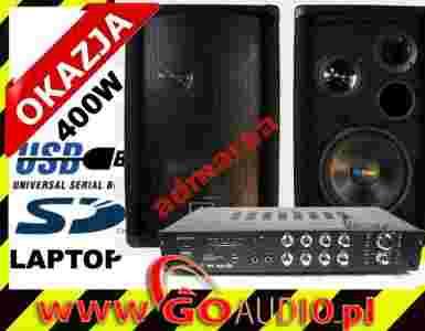 Zestaw dwóch kolumn ze wzmacniaczem AV, z czytnikiem kart SD oraz USB.