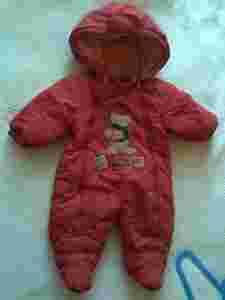KOMBINEZON 9-12 M-CY,CZERWONY Z KAPTUREM.80 CM.