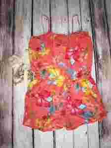 KOMBINEZON FALBANKA KWIATKI KORALOWY 146cm/11LAT