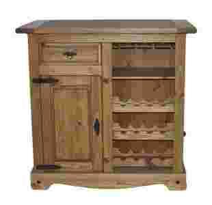Stojak na kieliszki i enklawy na butelki wina. Ten bar jest prawdziwym wydarzeniem. Optycznie niezwykły, ciepły, powierzchnia z serii Doniec czyni ten mebel niesamowitym. Cechy: Lite drzewo sosnowe woskowane Wysokiej jakości metalowe listwy Dł / Sz / Wys cm 65x111x109 Stojak na kieliszki i enklawy na butelki wina 1 półka za drzwiami
