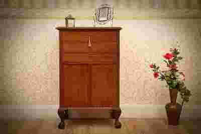 Ten niewielki mebel powstał w Europie Zachodniej, a wykonano go z drewna orzechowego.