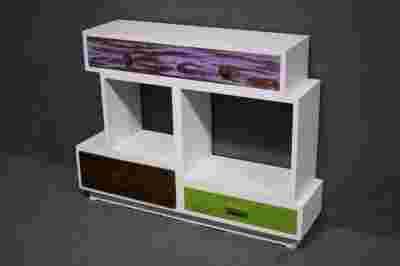 Komoda jest nowa, sprzedawana w II gatunku. Wykonana częściowo z drewna w połączeniu z płytą MDF. Posiada kolorowe drewniane fronty szuflad, celowo postarzałe fronty oraz delikatne otarcia na kantach. Drobne wady widoczne na zdjęciach.