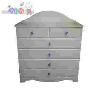 Komoda CLASIC z trzema szufladami. Zwieńczenie komody dopasowane do zestawu CLASIC. Rogi blatu kody są zaokrąglone dla większego bezpieczeństwa dziecka. Wymiary W107 x S91cm, głębokość 54cm (blat na wysokości 90cm). Komoda wykonana z płyty MDF oraz płyty laminowanej. Fronty pomalowane są wodnymi farbami akrylowymi - farby posiadają atest stosowania w produkcji artykułów dla dzieci. Komoda występuje także w wersji o wymiarach W131x S81cm (z sześcioma szufladami).