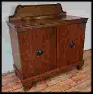 Mebel jest fornirowany dębiną i mahoniem, w całości wykonany z drewna.