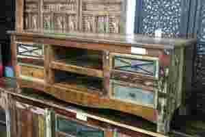 Komoda rtv wykonana jest z litego drewna teak.
