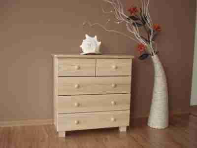 KOMODA JEST WYKONANA Z LITEGO DREWNA SOSNOWEGO LAKIEROWANA TRZYKROTNIE METODĄ NATRYSKOWĄ LAKIEREM BEZBARWNYM EKOLOGICZNYM.