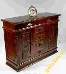 KOMODA WYKONANA JEST Z DREWNA SOSNOWEGO, ZDOBIONA CIEKAWYMI ELEMENTAMI RZEŹBIONYMI O MOTYWACH KWIATOWYCH.
