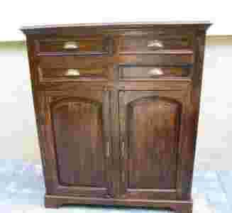 Przedmiotem aukcji jest ładna, zgrabna i funkcjonalna komoda. Przedmiot wykonany ręcznie przez indyjskich rzemieślników z egzotycznego drewna ( LITE DREWNO PALISANDER )w brązowym kolorze. Komoda jest wierną kopią starego kolonialnego mebelka. Jest ona funkcjonalnym i bardzo dekoracyjnym przedmiotem. Jej wnętrze podzielone jest na 2 części długą półką ukrytą za zamykanymi podwójnymi drzwiami. Komoda posiada również 4 pojemne szuflady, które pomieszczą różne drobiazgi. Uwagę zwraca również efektowne połączenie blatu z pozostałą częścią komody oraz wykończenia szuflad.