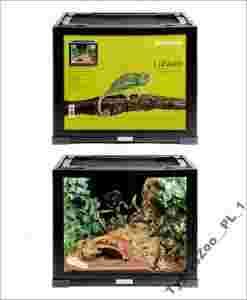 Profesjonalny zestaw ze szklanym terrarium otwieranym z góry i z przodu dla początkujących i zaawansowanych hodowców jaszczurek i innych niedużych zwierząt egzotycznych. Terrarium posiada wentylację zarówno w postaci górnej siatki jak i z boku i jest profesjonalnie wykonane.