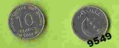 Komory 10 francs 2001 moneta UNC rzadkość