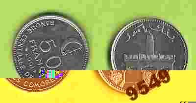 Komory 50 francs 2001 moneta UNC rzadkość