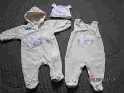 Komplecik: pajacyk, śpiochy i czapeczka 3-6m