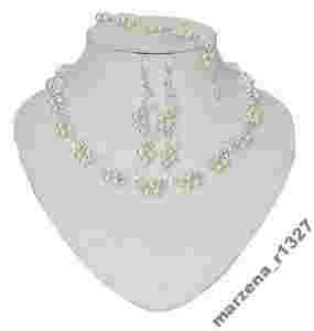 Komplet jest posrebrzany kryształkii w kolorze crystal - transparentny ecru perełki.