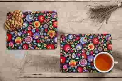 Komplet 2 korkowych podkładek na stół CZARNE KWIATY ŁOWICKIE kod produktu: 220[zasłonięte][zasłonięte]00022