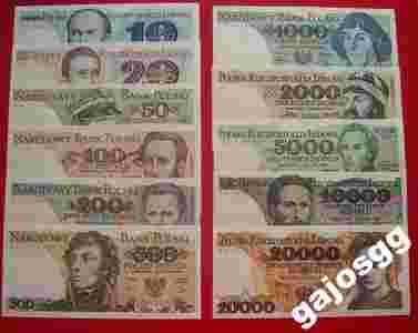 KOMPLET BANKNOTÓW PRL OD 10 DO 20000 UNC PIEKNY
