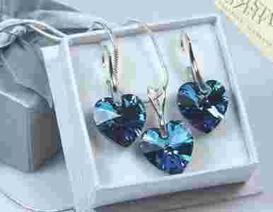 KOMPLET BIŻUTERII HEART SWAROVSKI BERMUDA BLUE !!!
