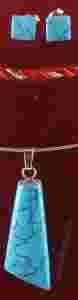 KOMPLET BIŻUTERII WYKONANEJ Z NATURALNEGO KAMIENIA O NAZWIE TURKUS W POŁĄCZENIU ZE SREBREM PRÓBY 925.