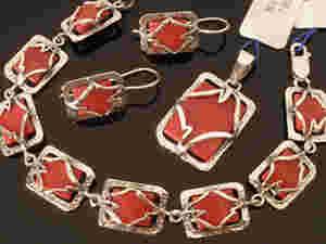 KOMPLET BIŻUTERII SREBRNEJ - czerwony uleksyt