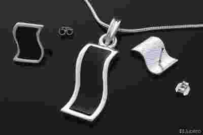 KOMPLET BIŻUTERII SREBRNY + CZARNY fala rr260