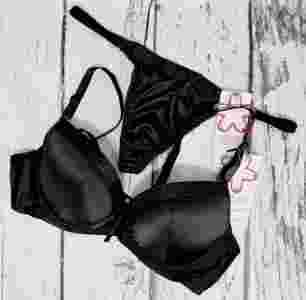 KOMPLET BIELIZNY CZARNY DŻETY STRINGI 85B+L /3380