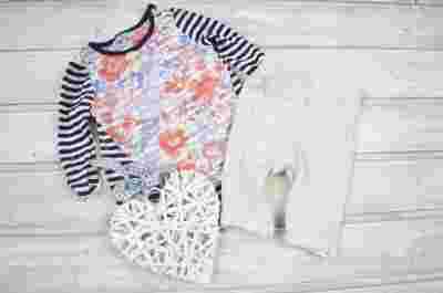 KOMPLET BLUZKA KWIATKI PASKI+LEGGINSY 0-3 mce