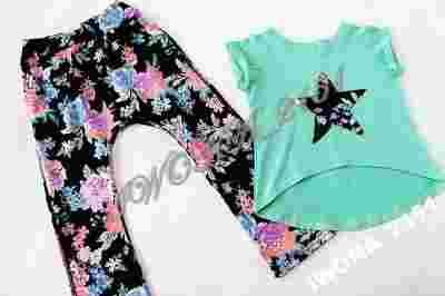 KOMPLET DRES Spodnie + bluzka Kwiaty 116