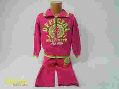Komplet 3 częściowy : bluza, koszulka, spodnie. Bluza rozpinana ze stójką , kolor zielono-różowy. Koszulka na krótki rękaw, , kolor różowo-zielony. Spodnie w pasie na gumkę z kieszeniami z przodu, kolor zielony.